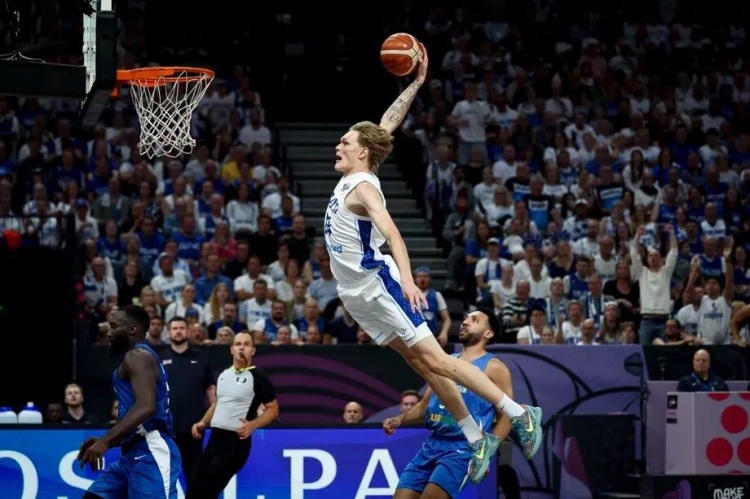 2025年的男篮欧洲杯出现了很多“第一次”,而芬兰男篮,历史第一次打进了赛事四强。在这支让人眼前一亮的芬兰队中,除了场场数据炸裂被调侃在NBA憋坏的马尔卡宁,还有一位在社交媒体短视频疯狂刷屏的新人,